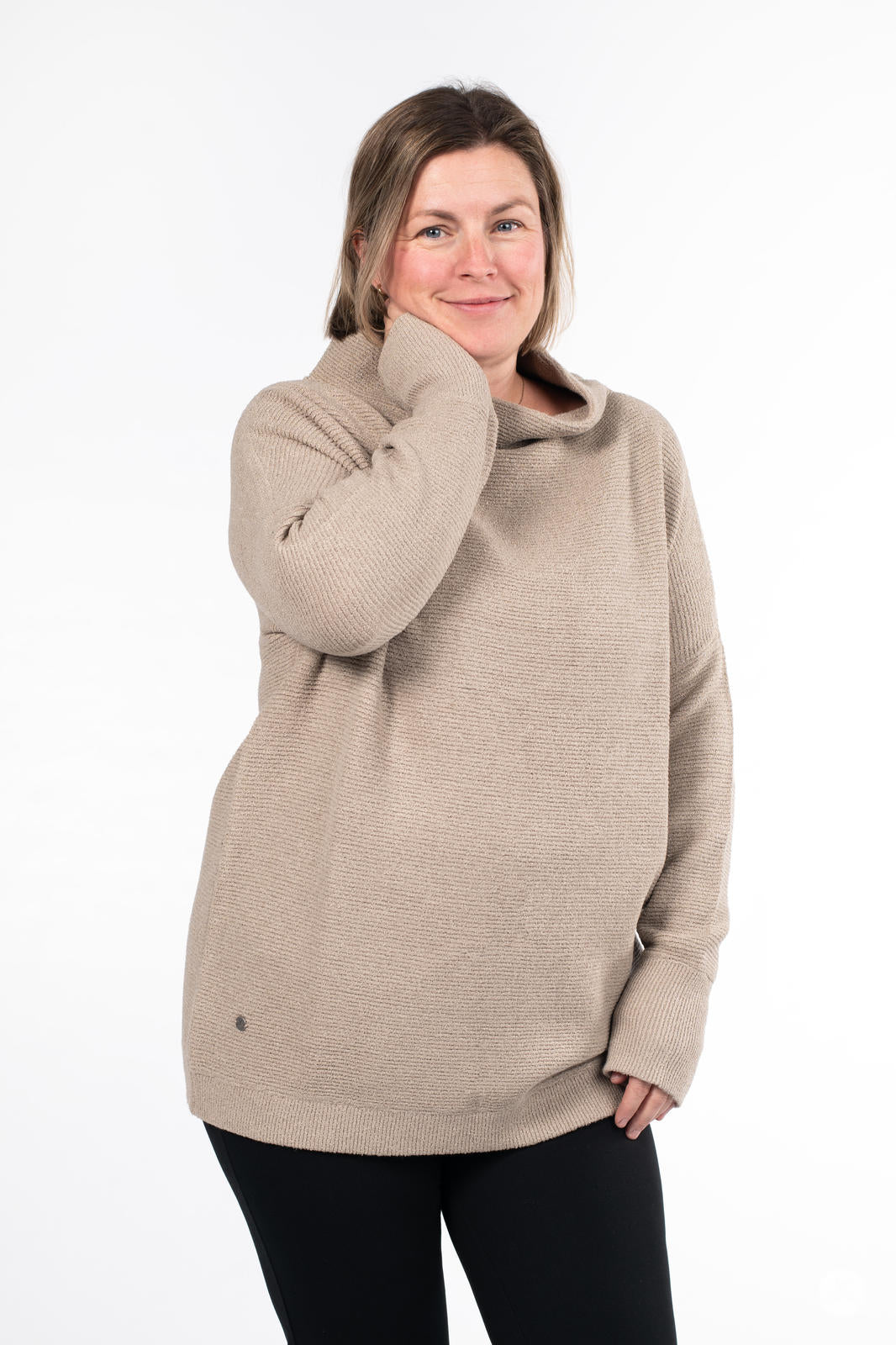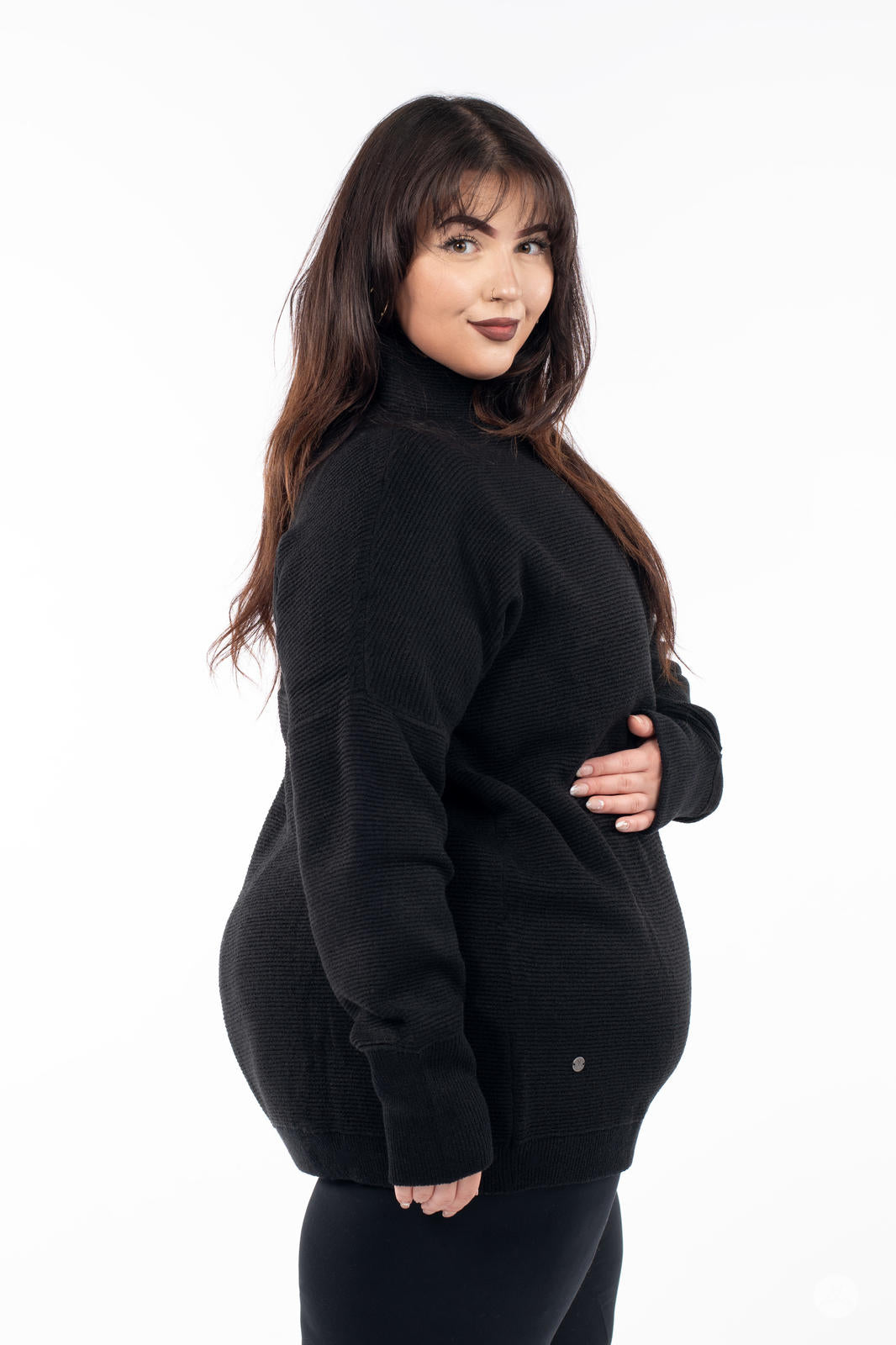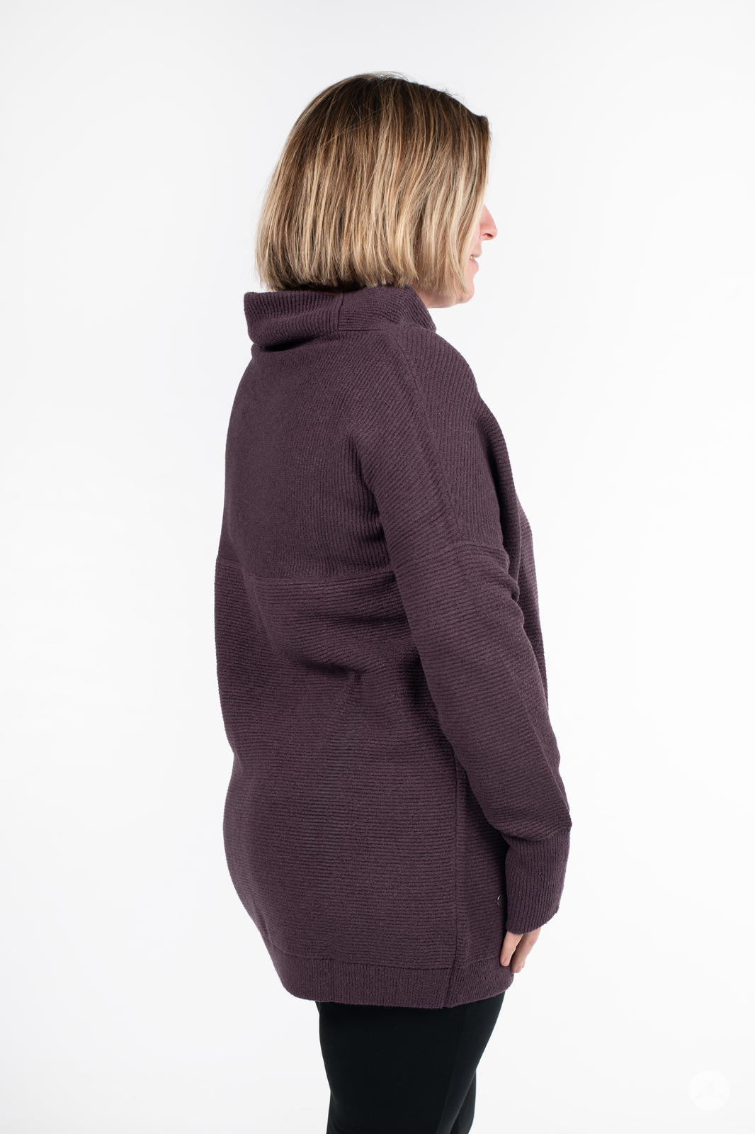 Embrace chilly days in luxurious comfort with the Ottoman Mock Neck Sweater. Crafted from a heavyweight, thicker fabric, this tunic offers warmth and a luxe finish that’s perfect for cold weather. Featuring directional ottoman ribbing and a relaxed fit, this long, cozy pullover pairs well with your favourite leggings or denim. Designed to flatter all body types, this is an essential layer in everyone’s wardrobe.