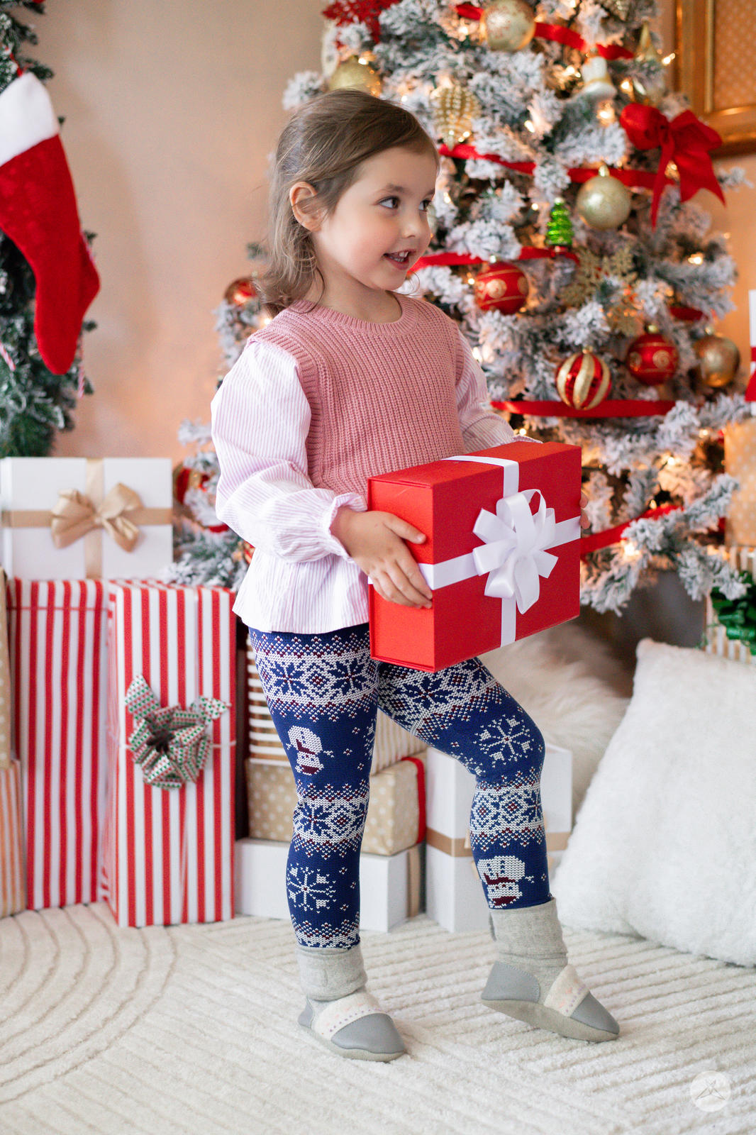 Get your kids ready for Snow Much Fun this holiday season! Whether they’re cozying up with hot cocoa by the fire or building their own snowman, these snowman-sprinkled Christmas leggings are the perfect choice for festive holiday fun.
