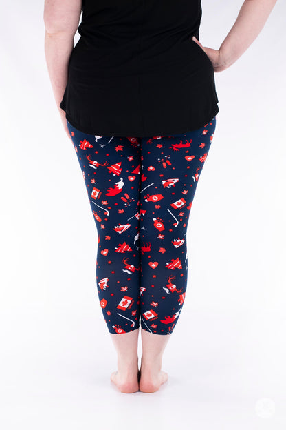 Célébrez la fête du Canada avec style avec The Eh Team Crops et portez-les avec un débardeur court rouge à poche, un sweat à capuche zippé sportif gris chiné et des sandales Birkenstock marron classiques.