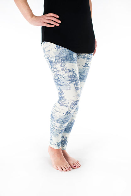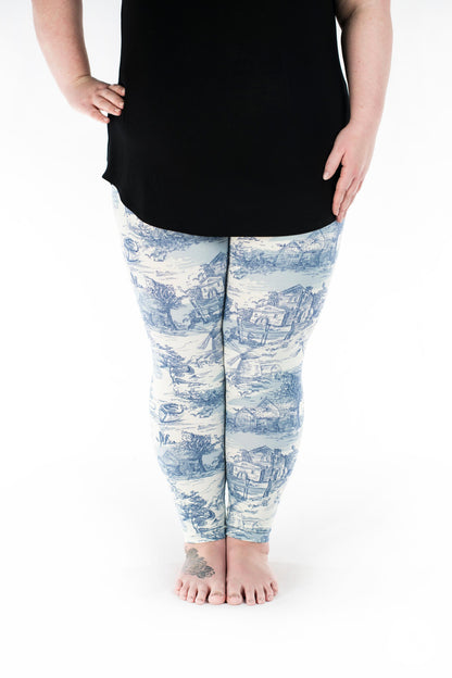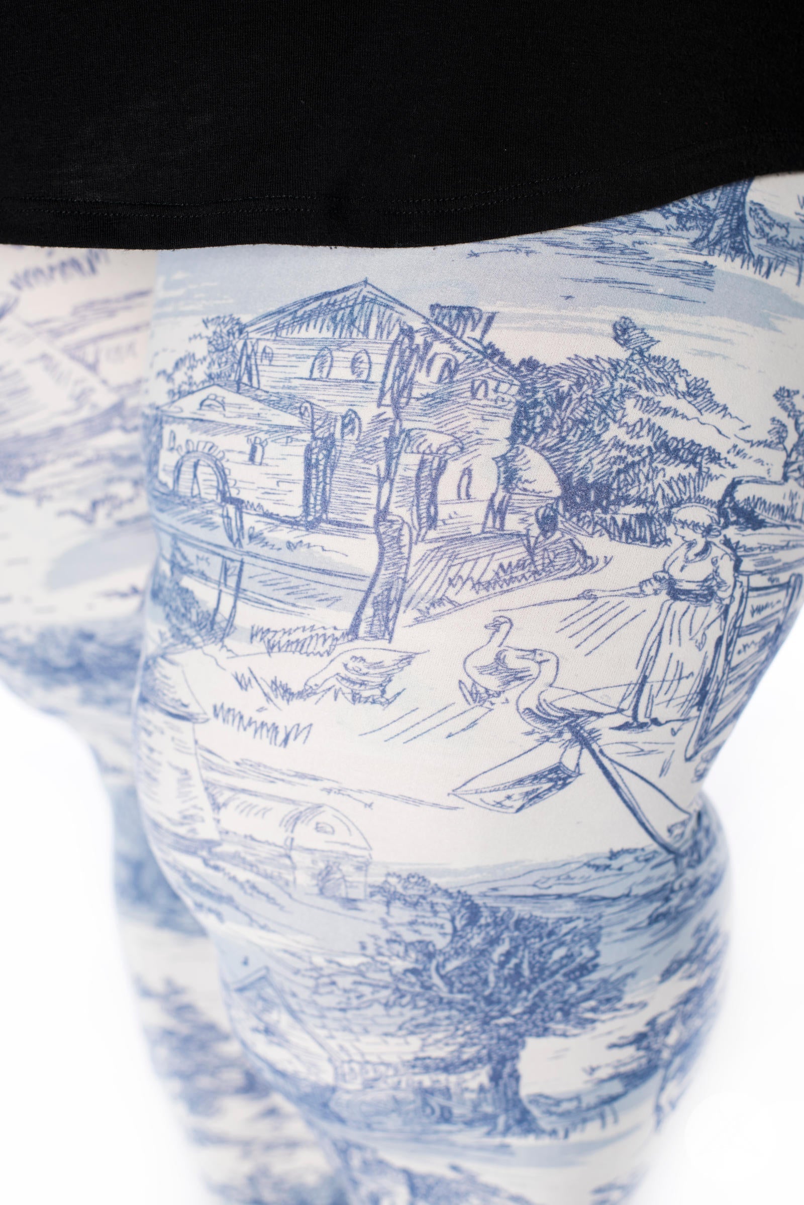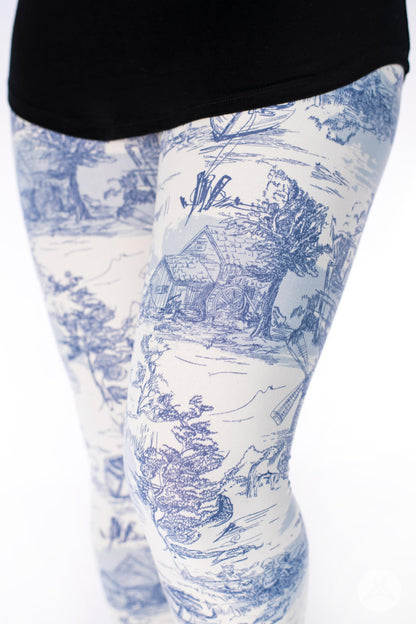 Step into a scene from the past with this breathtaking blue and white landscape print. Featuring intricate details like windmills, horses, rivers, and more, this timeless design brings a sense of nostalgia and charm to your wardrobe. A truly stunning piece for those who love vintage-inspired elegance! 🌾🐴