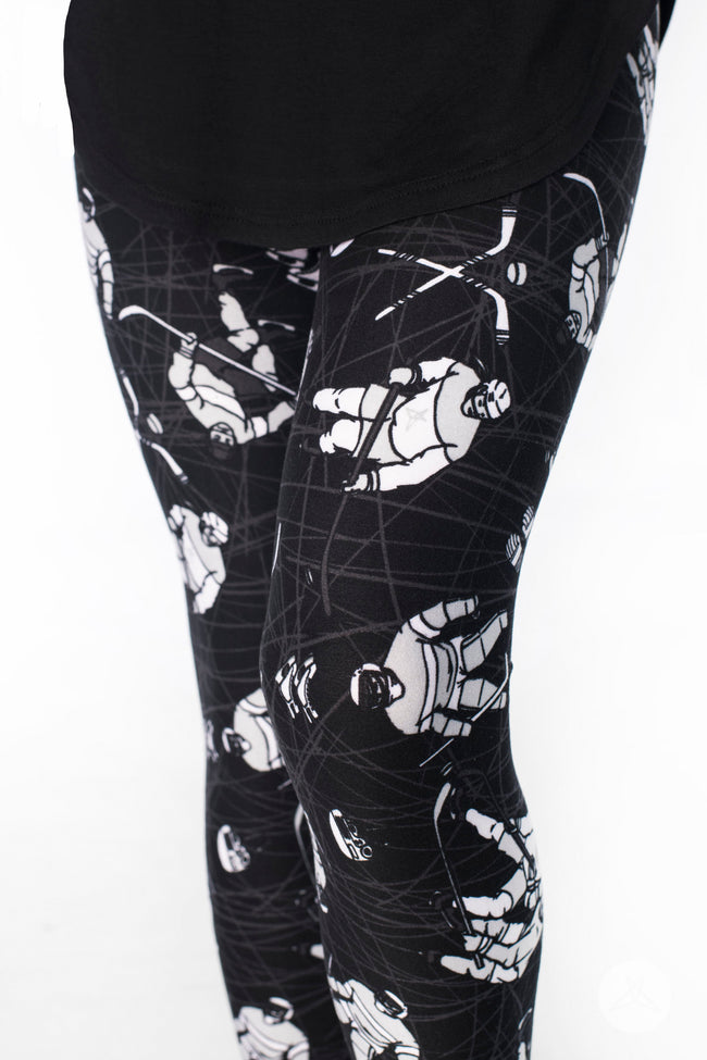 This black, white, and grey hockey print is an absolute beauty, and is a sure-fire hat trick for hockey fans everywhere!