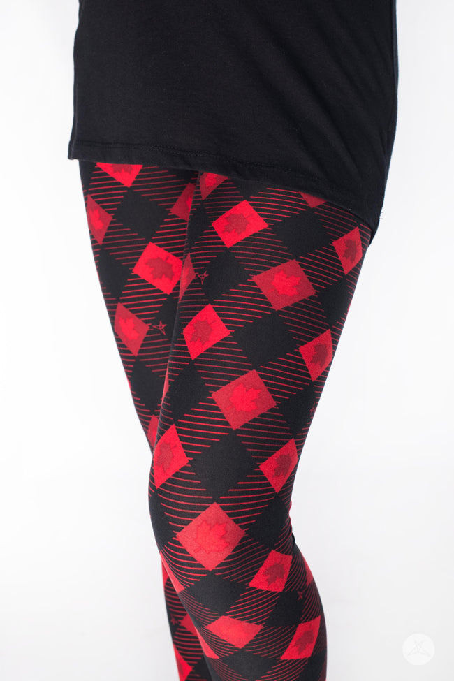Our patriotic Canada Strong print features a black and red maple leaf plaid pattern that kids will love wearing all year! Our Signature SweetLegs Line offers three sizes to fit the little ones in your life: 2-4, 6-8, and 10-12. If you have a child who is larger than a kids' size 12 but still too small for our One Size SweetLegs, try our Petite option.