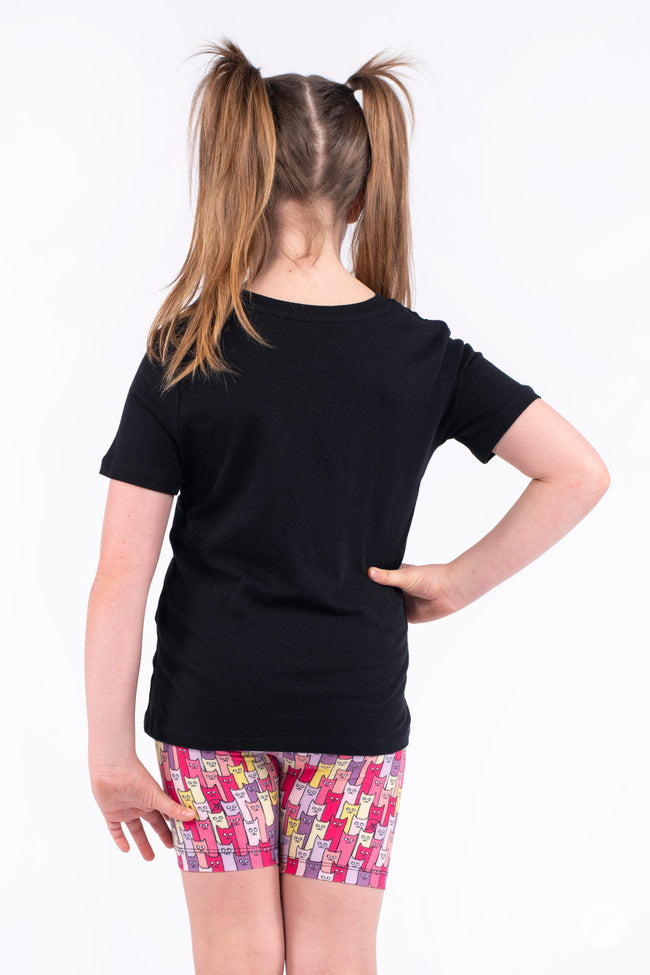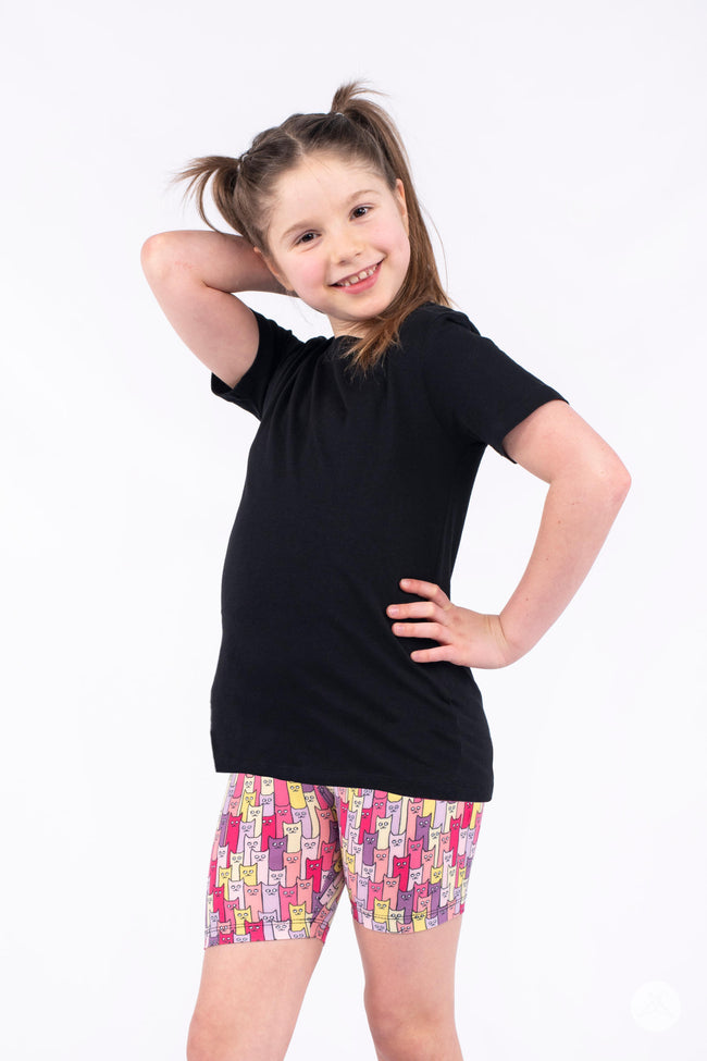 Bring fun and comfort to every adventure with Cattitude Kids Biker Shorts from SweetLegs. These soft, buttery biker shorts feature the same signature fit you love, with a shorter inseam that hits above the knee - perfect for active play, warm weather days, or layering under dresses and tees. Made from stretchy, breathable fabric, they move with kids through every jump, run, and spin.