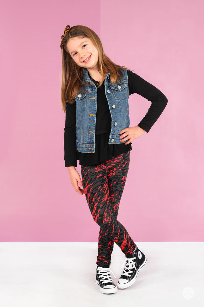 This brilliant animal-inspired coral, black, and charcoal grey print will add a touch of pizzaz to your wardrobe with it’s fun and eclectic vibe!