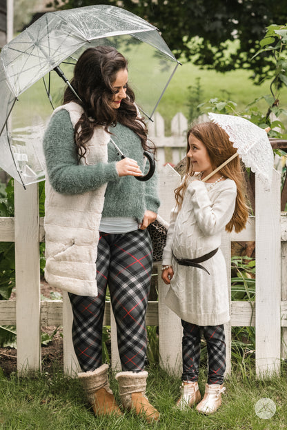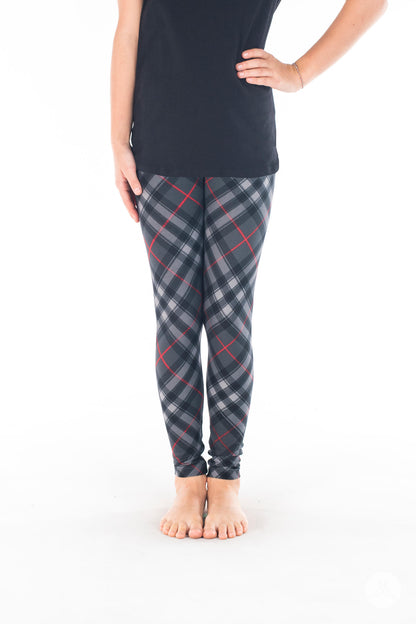This neutral grey-toned plaid features a fresh red accent stripe for a fun and sophisticated addition to your SweetLegs collection!