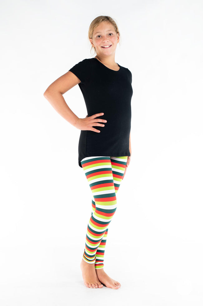The combination of red, white, deep green, and lime green horizontal stripes makes this print a go-to staple for the holiday season or any time of year when you want a pop of colour!