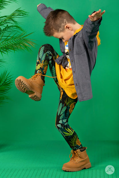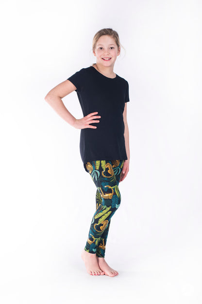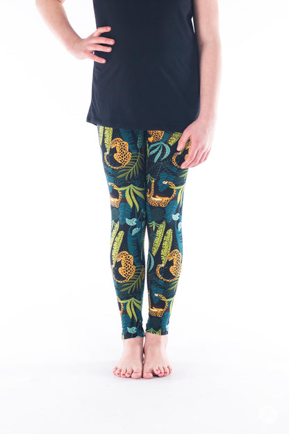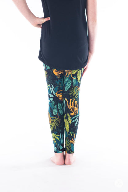 Big cat enthusiasts everywhere will adore these bold and stylish SweetLegs featuring fierce jungle leopards and fresh green foliage accented on a rich black background.