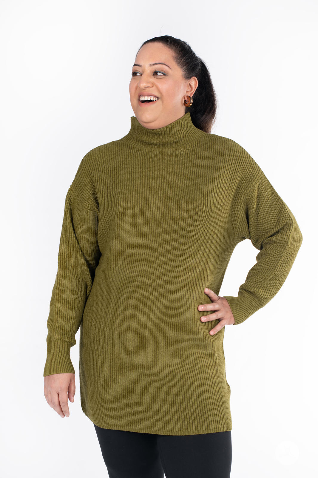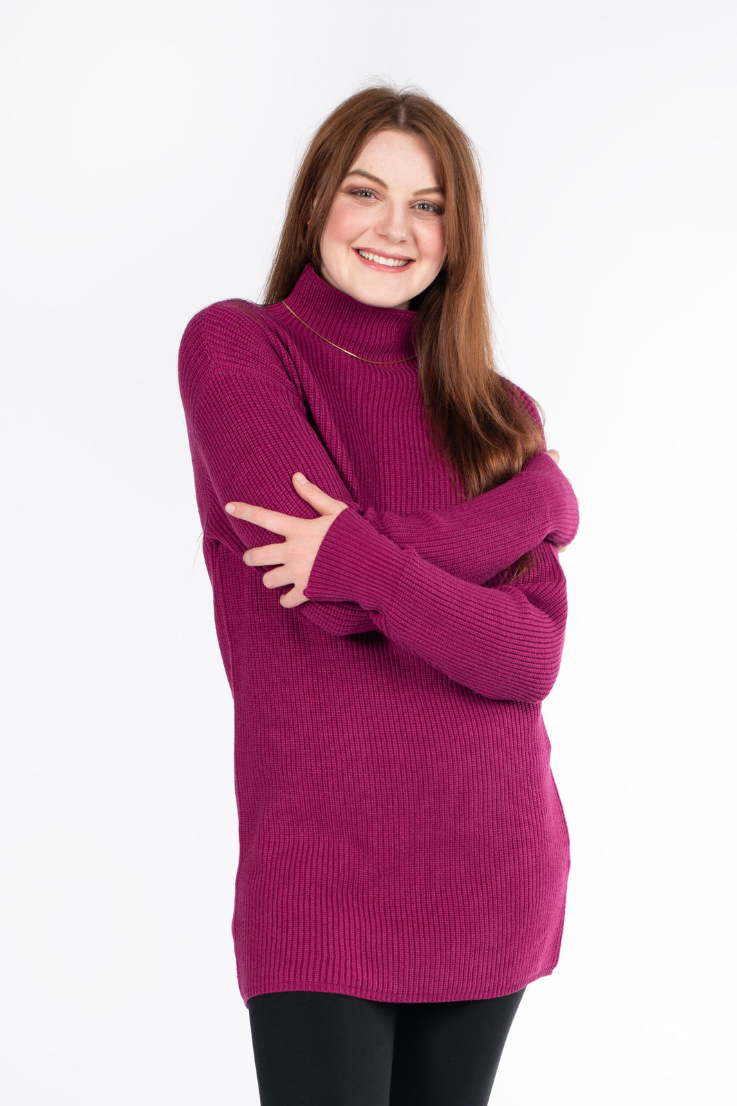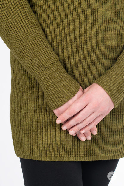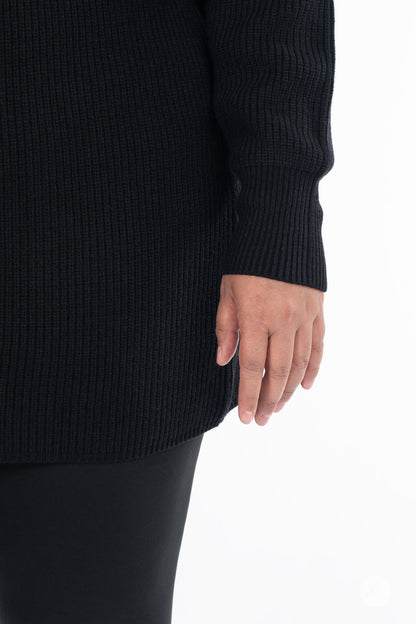 The Luxe Knit Sweater Dress, a classic wardrobe staple, is crafted from luxurious, ribbed fabric. Marrying comfort with style, it features long sleeves and a flattering mock neck design. Ideal for fall and winter, this dress pairs seamlessly with leggings for a cozy yet chic ensemble.