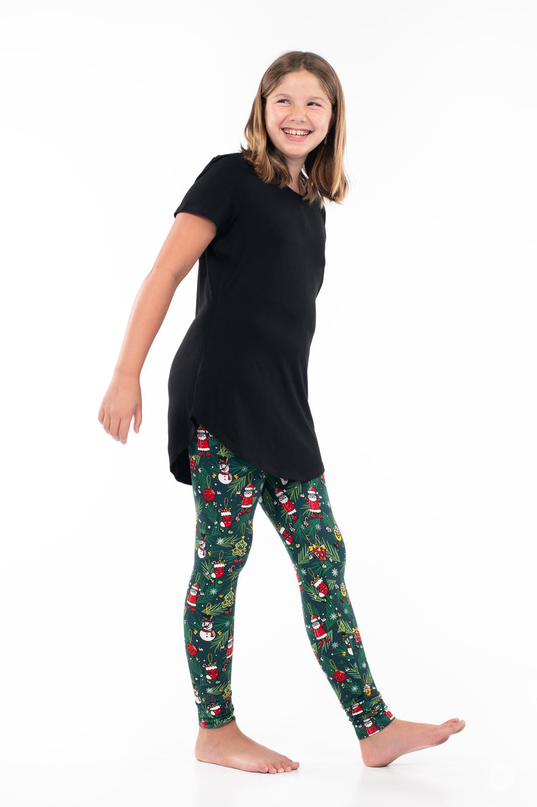 No need to pine for the holidays with these festive leggings! Designed with everything kids love about Christmas – cheerful Santas, twinkling ornaments, and presents. These are the perfect Christmas leggings to wear while decorating the tree.