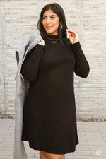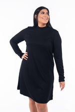 Indulge in the luxurious comfort and timeless elegance of the Mock Neck Ribbed Dress. Crafted from soft jersey knit fabric and graced with a chic mock neck and long sleeves, this dress is your go-to for feeling effortlessly stylish.
