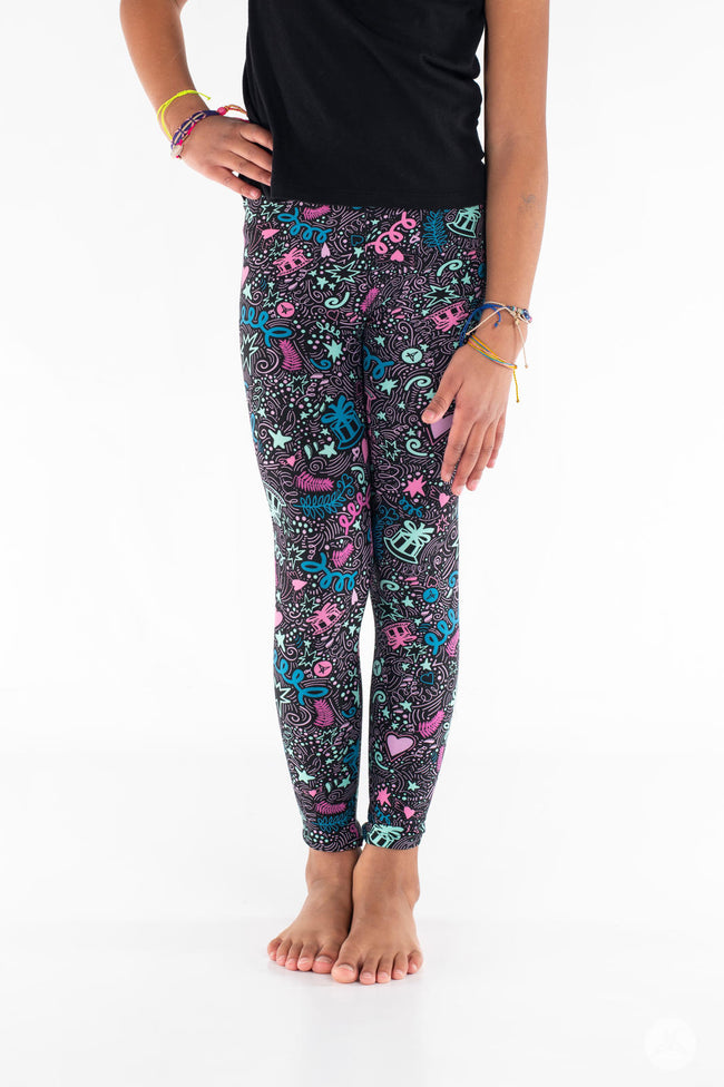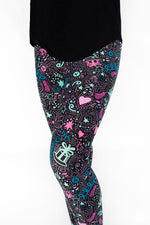 Partylicious SweetLegs are all about celebrating the good times. This fun print features shooting stars, flying hearts, confetti and wrapped gifts in shades of hot pink, purple, turquoise and blue - all set on a jet black background.