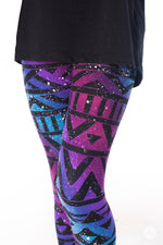 These stunning SweetLegs feature interlocking shades of purple, teal, and ruby pink superimposed with a black abstract pattern and accenting white splatters that look out of this world!