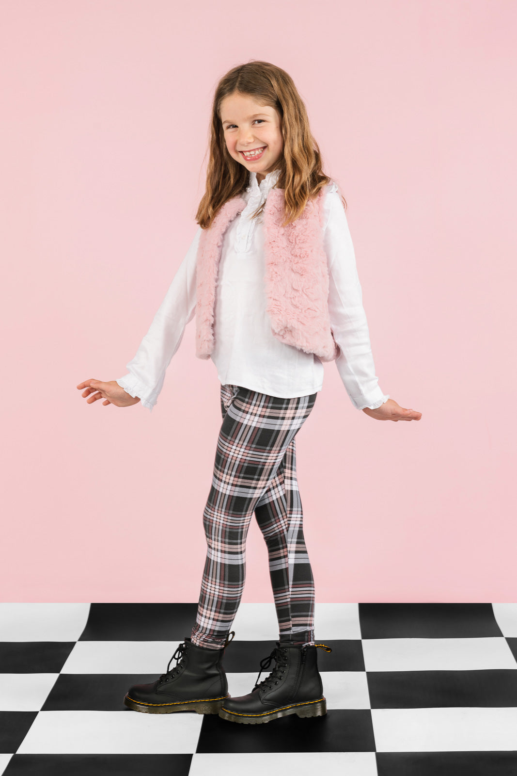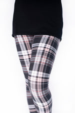 This gorgeous pink and grey plaid is an elegant addition to any fall wardrobe, yet subtle enough to wear year-round.