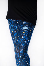 This universe-inspired print features planets, stars, and moons on an abstract black and blue background, and is the perfect gift for any space-enthusiast!