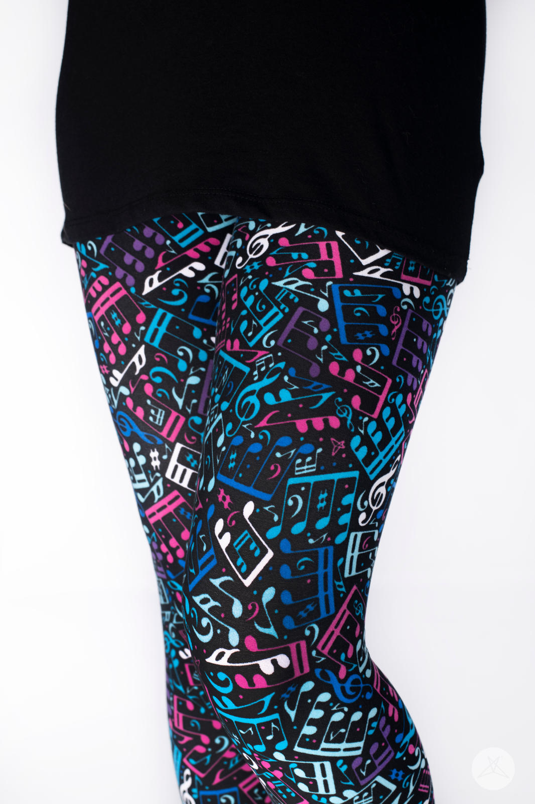Blue, pink, purple, and white music notes are scattered on a deep black background that’s perfect for any musically-inclined SweetLegs lover.