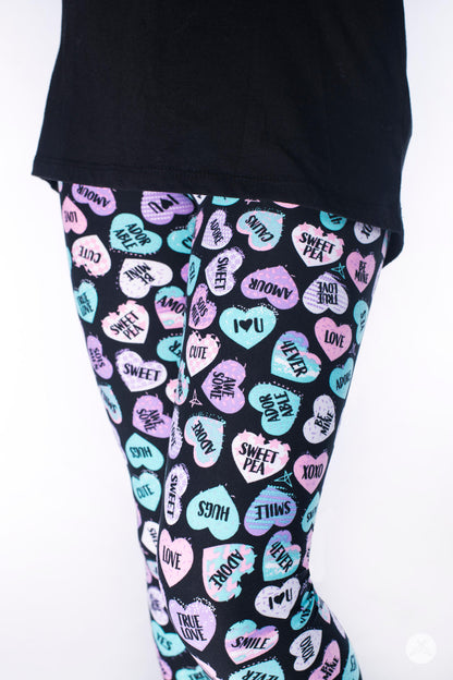These adorable pastel-coloured candy hearts on a deep black background are the perfect gift for the little one that you cherish.