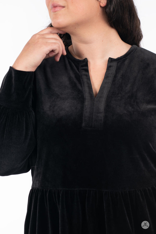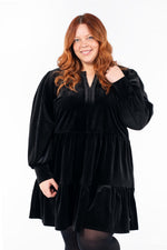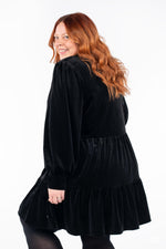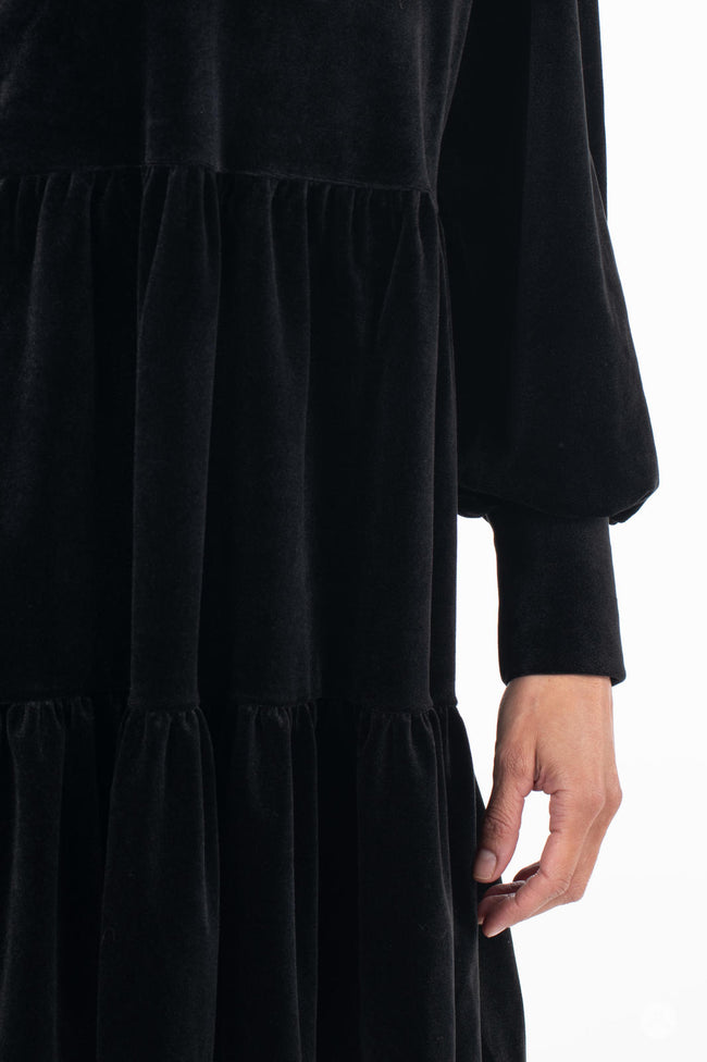 Be the life of the party in the Velour Party Dress, a true showstopper. Crafted from a rich, plush-textured stretch velour fabric, you will exude glamour in this dress. With a playful ruffle hem, tiered skirt and flirty balloon sleeves, dance the night away with flair. A flattering and comfortable flared fit that ensures you feel as great as you look.